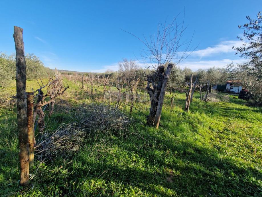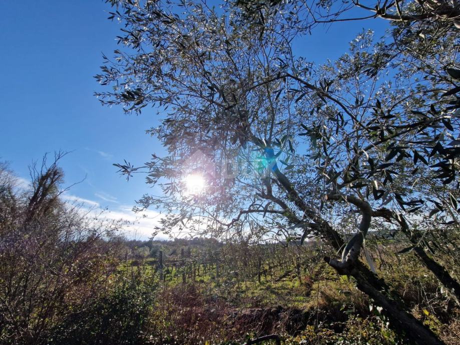 Okućnica kuće prostire se na 4.403 m2, a uz nju dolazi i dodatnih 3.789 m2 zemljišta koje je od 2008. godine uzeto u dugoročan zakup na 50 godina, pa budući vlasnik uživa u korištenju do 2058. godine. Maslinik se sastoji od 80 rodnih maslina sorte Leccino posađenih 1985. godine, koje u plodnim godinama daju oko 150 litara ekstra djevičanskog maslinovog ulja vrhunske kvalitete. Neposredno uz kuću nalazi se i mladi maslinik sa 80 stabala posađenih 2008. godine. Pored maslinika nalazi se oranica veličine 1000m2 gdije je prije bio vinograd. Teren također krasi 3 drveća višnje, od kojih je jedna američka višnja te jedna trešnja i nekoliko drveća badema.