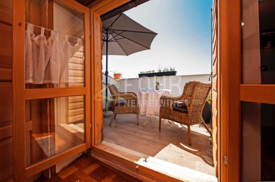 Kuća ima dvije terase te panoramskim pogledom na more i stari grad.