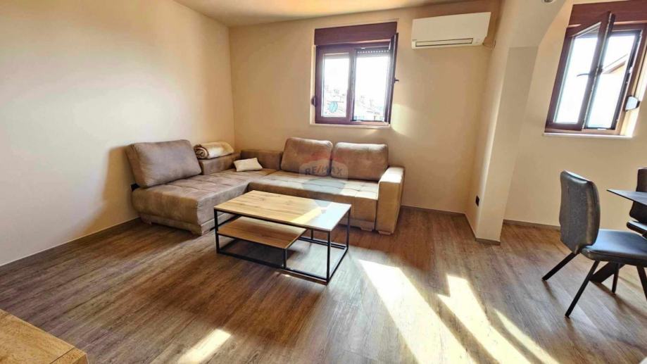 Stan se nalazi u stambenoj zgradi, na pješačkoj udaljenosti od mora i starog grada. Stan je kompletno renoviran 2023 godine. Sa dnevnog boravka se proteže predivan pogled na more.