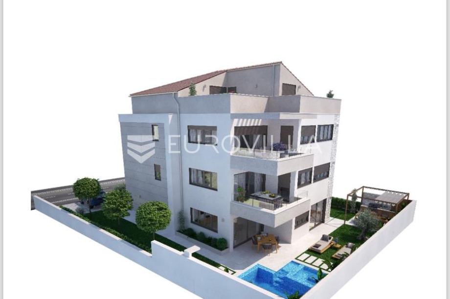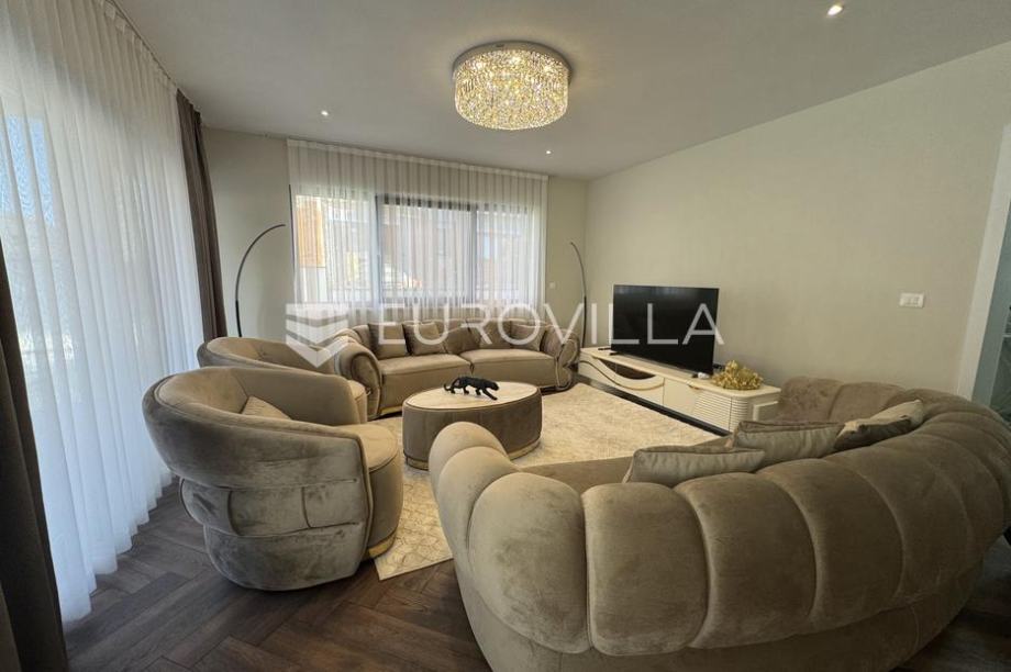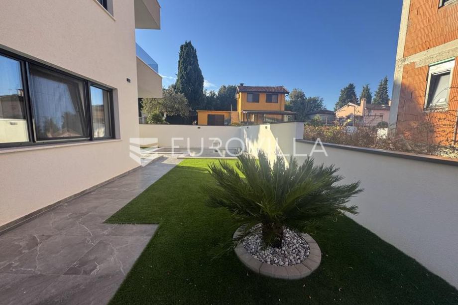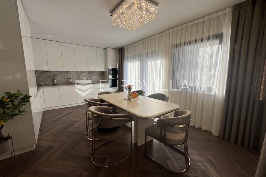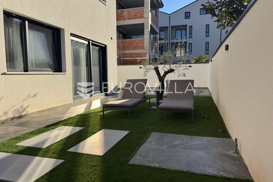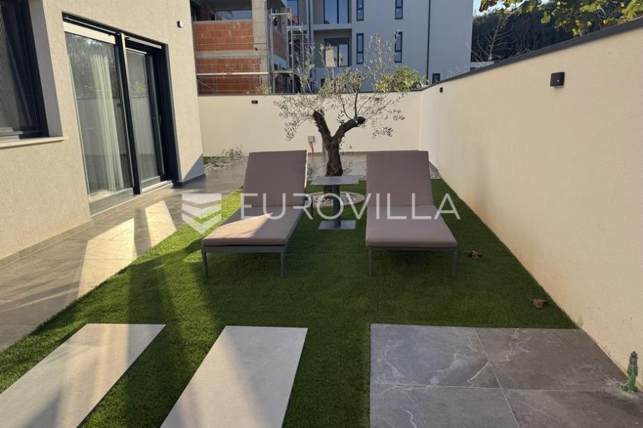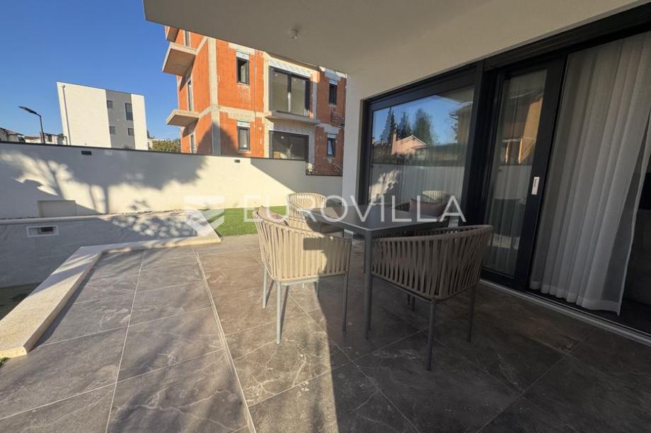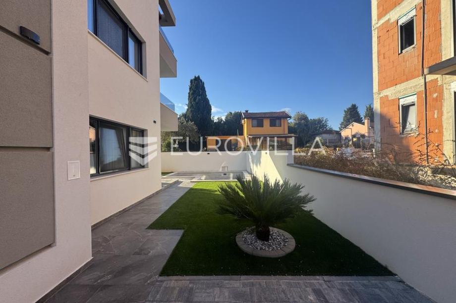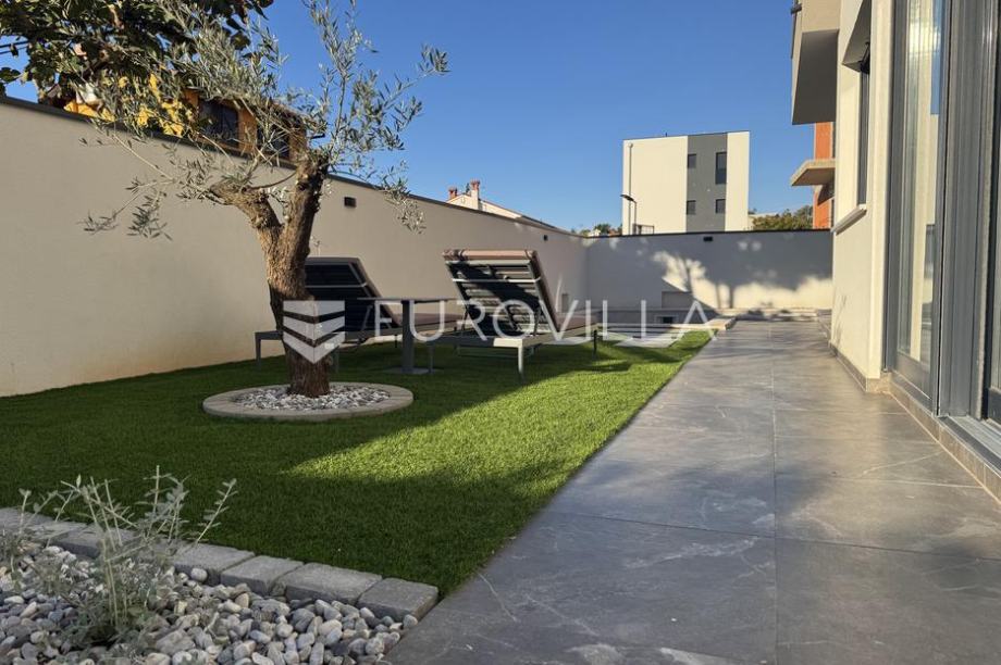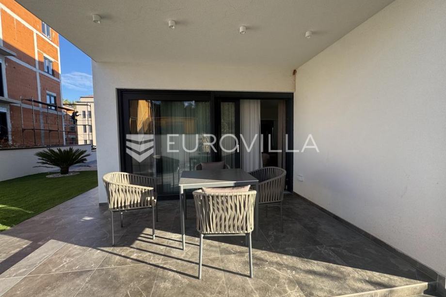 Istria, Rovinj - modern and luxuriously furnished 130 m² ground-floor apartment with three bedrooms, located in a newly built property with a private garden and swimming pool, just 650 meters from the sea.The apartment has an interior area of 118.74 m² and is situated on the ground floor of a new...