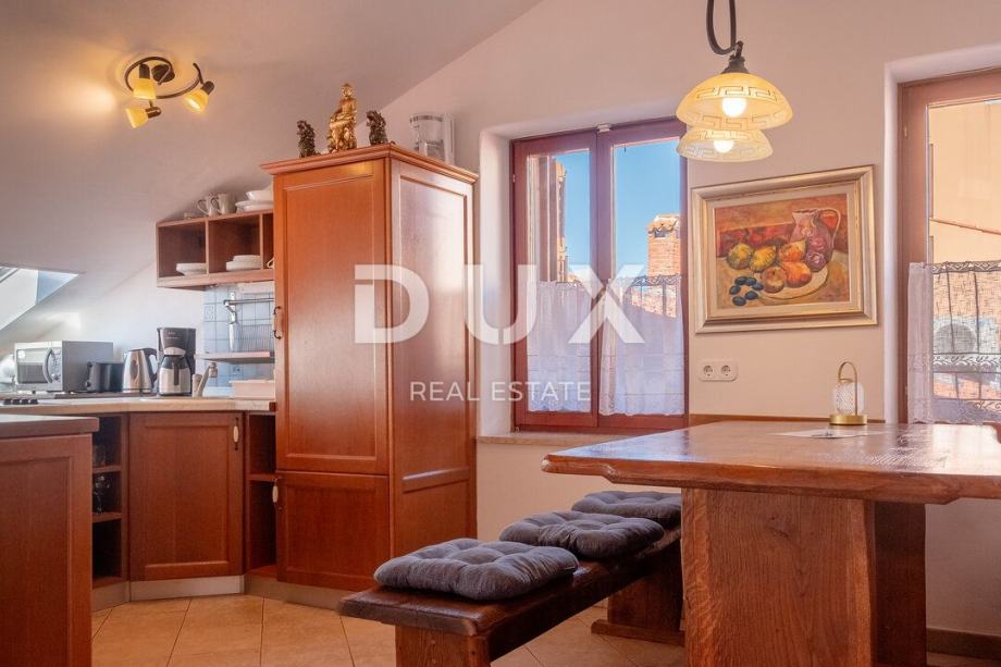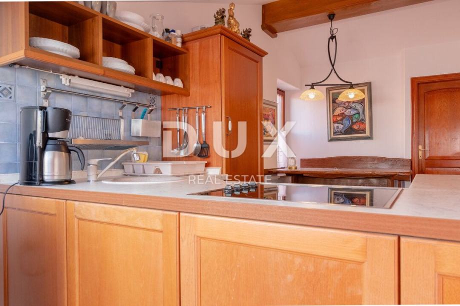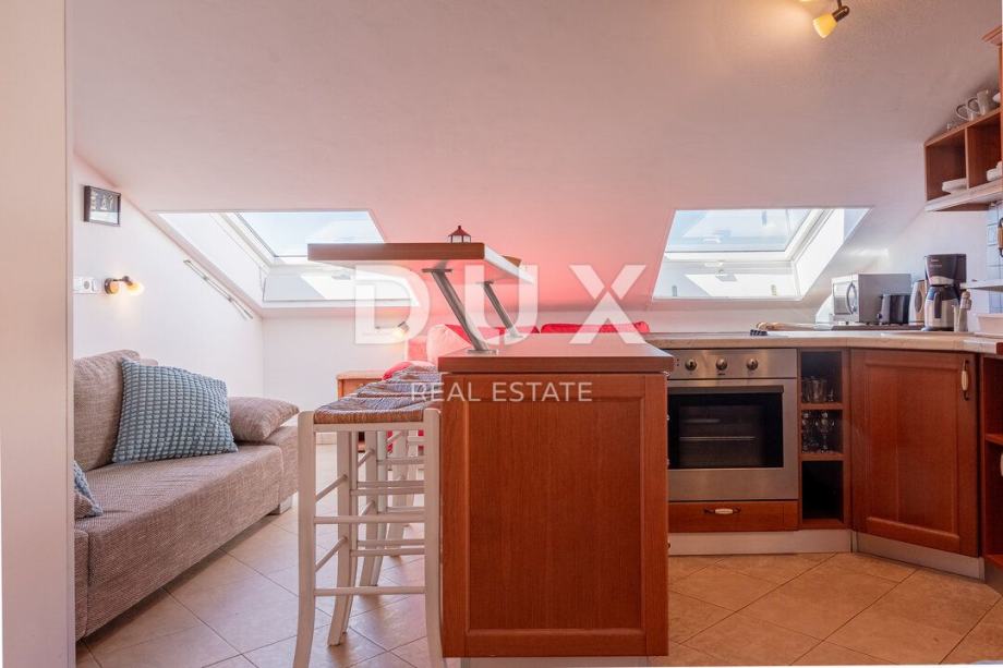 Tako ulazom u stan nalazimo se u predvorju s predviđenim prostorom za garderobu, koje nas zatim uvodi u dnevni prostor stana, koncipiran po sistemu "open space" prostora bez pregradnih zidova. U istome prostoru imate priliku svoje vrijeme provoditi u komotnom dnevnom boravku, gdje se smjestila i modernija kuhinja, te i komotna blagovaonica. Ono što krasi ovaj prostor stana, jesu krovni prozori, uz pomoć kojih u prostor stana prodire bogata količina prirodne dnevne svjetlosti, a koji ujedno služe i kao savršeno mjesto za ispijanje jutarnje kave ili večernje čaše vina uz otvoreni pogled na more i krajolik.