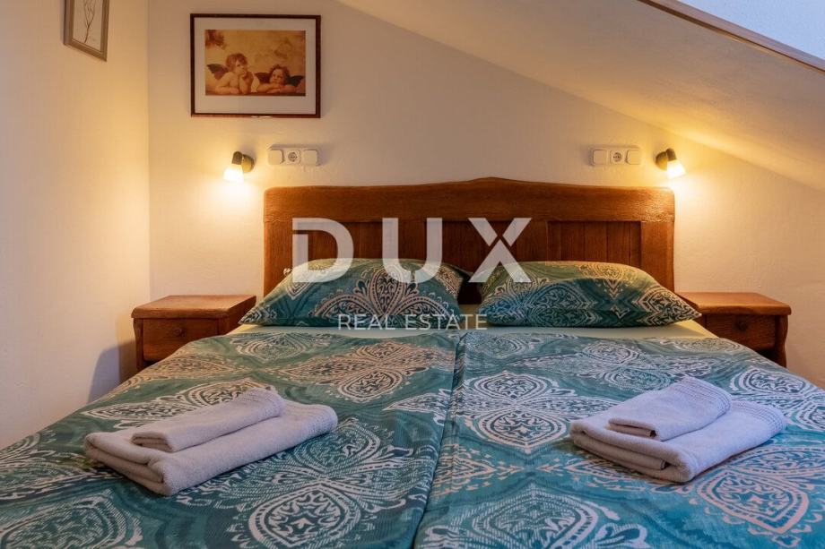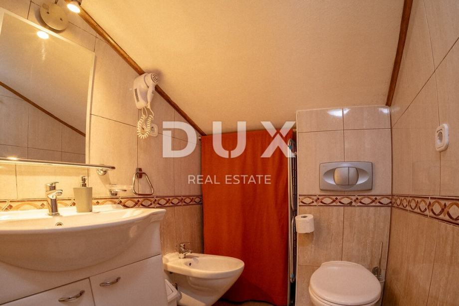 Dodatno, stan se sastoji od uređenog kupatila s tuš kabinom, gostinjskog toaleta, te i odvojene dvije prostrane spavaće sobe. Isti se ugođaj iz dnevnoga prostora seli i prema spavaćim sobama uz pomoć većih prozora. koji jednako tako predstavlja savršeno mjesto za opuštanje u isti nevjerojatan pogled na more.