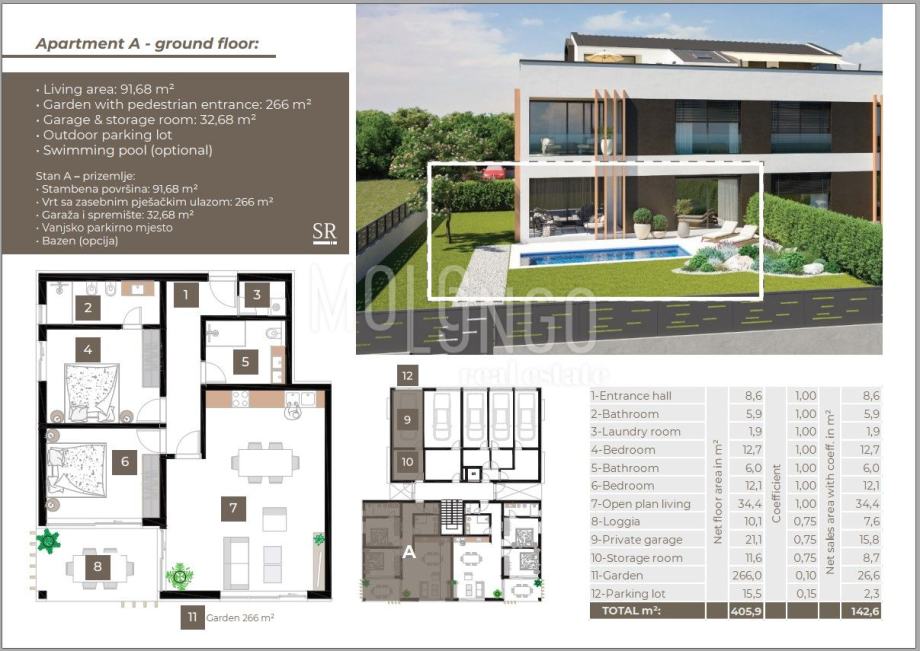 Svakom stanu pripada garaža, spremište i vanjsko parkirno mjesto