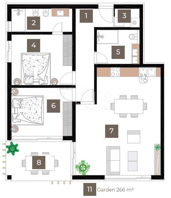 Urbana vila utjelovljuje sofisticiranost i jednostavnost, a smještena je u novoj rezidencijalnoj zoni, jedinoj svoje vrste u Rovinju. Sastoji se od šest pažljivo projektiranih stanova površine od 92m² do 199 m², koji nude savršenu ravnotežu privatnosti, mira i luksuznog življenja.