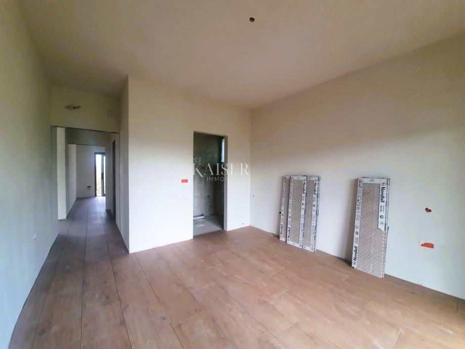 Stan je u procesu izgradnje, kao i cijela zgrada te se planira završiti do 06. mjeseca 2024 godine. Ovaj prekrasan novi moderan stan u svom sadržaju imati će 2 spavaće sobe, 2 kupaonice te prostrani i pun svjetlosti dnevni boravak, kuhinju i blagovaonicu. U sklopu stana nalaze se čak 3 izlazne terase, dvije na prvoj strani zgrade te jedna velika i prostrana terasa na zadnjoj strani koja povezuje dnevni boravak sa spavaćom sobom. Terasa na zadnjoj strani zgrade vrlo je modernog izgleda zbog svojih zaobljenih rubova te zbog toga i vrlo jedinstvenog dizajna. Stan će se grijati pomoću podnog grijanja a u svom sastavu imati će još dva klimatizacijska uređaja.