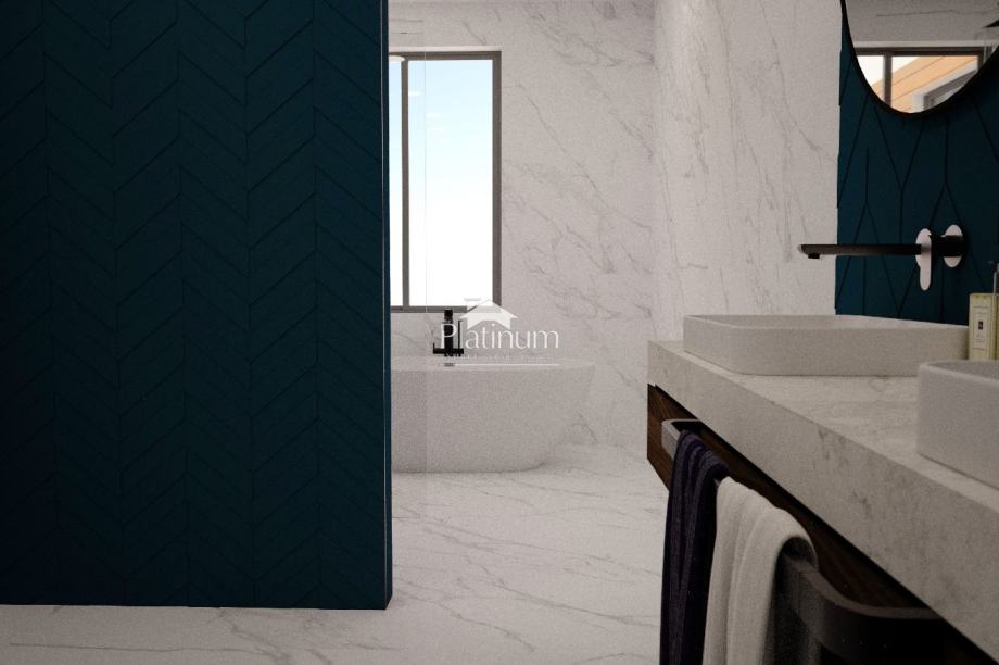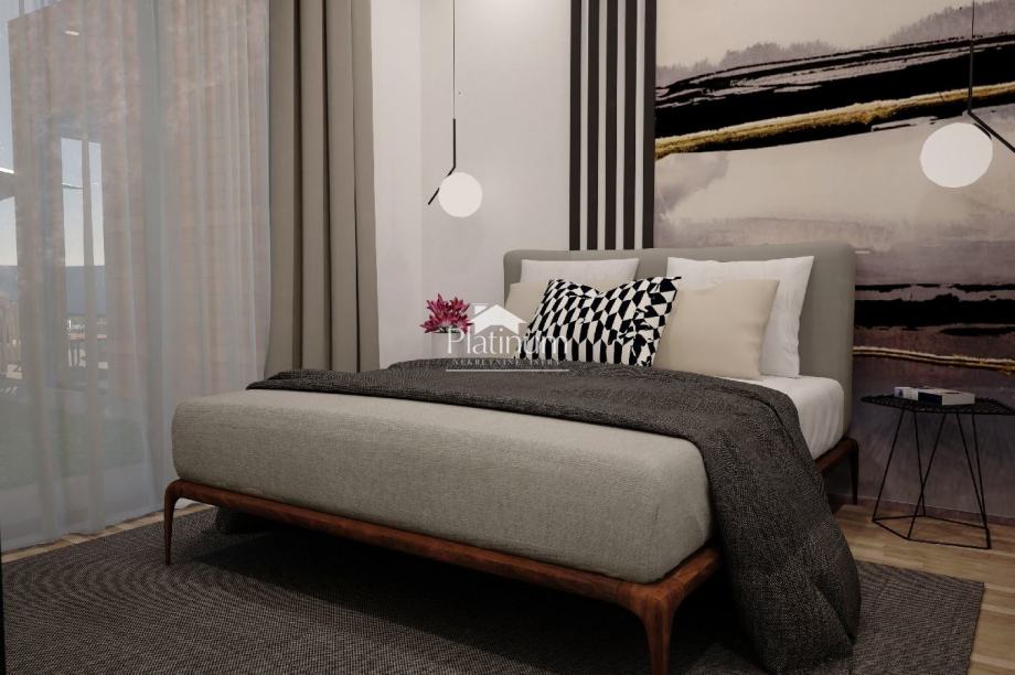 Stan se sastoji od četiri spavaće sobe, kuhinje s dnevnim boravkom i blagovaonicom, tri kupaonice, sobe, hodnika, balkona, terase, dva parkirna mjesta u garaži i ostave.