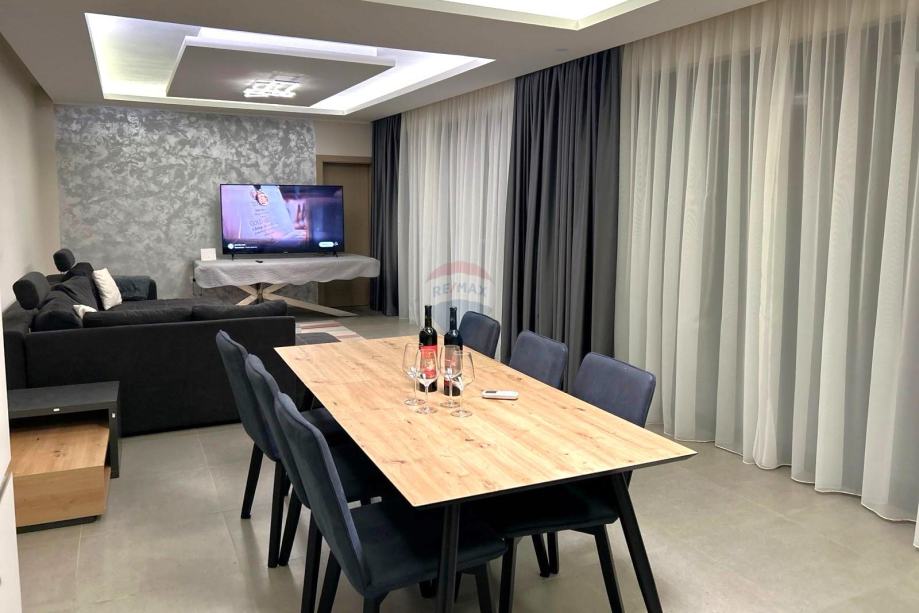 Vila se sastoji od prostranog i svijetlog dnevnog boravka spojenog s moderno opremljenom kuhinjom i blagovaonicom. Iz dnevnog prostora se kroz veliku staklenu stijenu izlazi na prostranu nenatkrivenu terasu – idealno mjesto za uživanje u toplim ljetnim večerima i druženje na otvorenom.