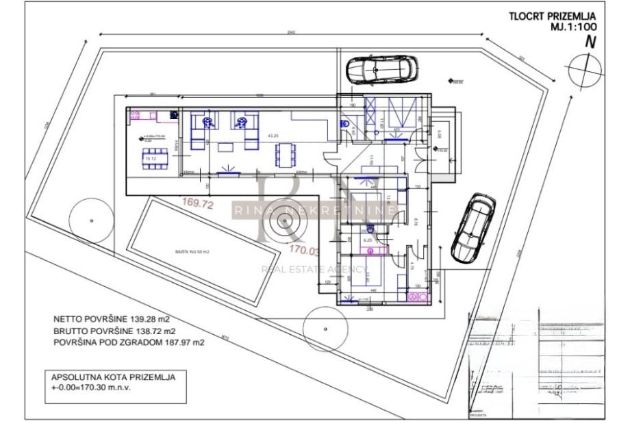 Smještena na uređenoj parceli od 650 m², villa ukupne površine 140 m² sastoji se od: