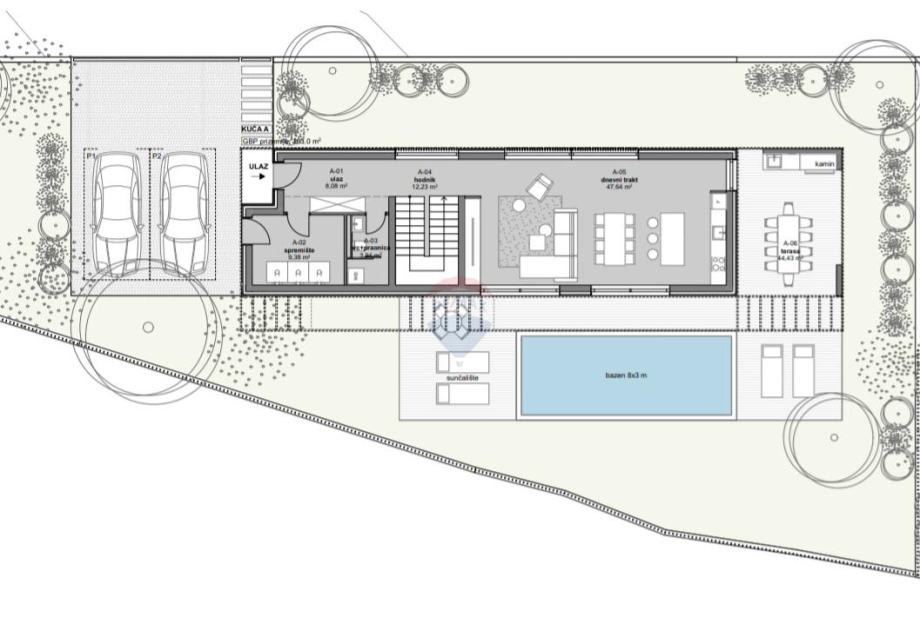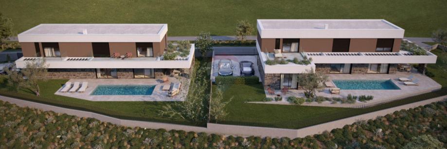 Moderna kuća s vlastitim bazenom, trenutno u fazi izgradnje s planiranim završetkom na ljeto 2025. Kuća će se sastojati od predsoblja, open space dnevnog boravka s kuhinjom i blagovaonicom, tri spavaće sobe sa vlastitim kupaonicama i izlaskom na balkon od kojih jedna ima i dodatnu garderobu, praonice i toaleta. Parcela je površine 700m2 a bazen je površine 24 m2.