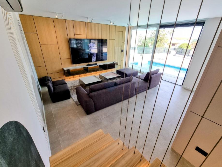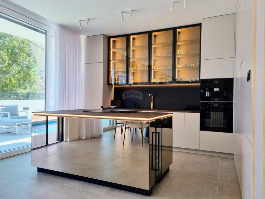 Villa se prostire na dvije etaže: prizemlje 90.72 m2 kat 131.61 m2, te se ista prodaje u potpunosti opremljena luksuznom opremom, namještajem i kompletnim inventarom.