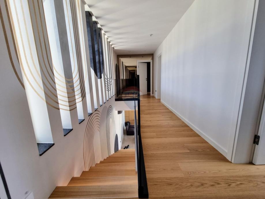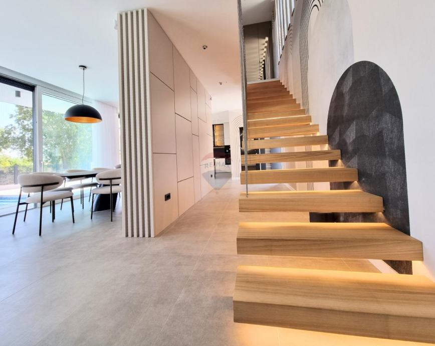 Stubište je izvedenu u stilu lebdećih stepenica s čeličnom potkonstrukcijom na koju su montirana drvena gazišta na kojima se na svakom gazištu nalazi osvjetljenje koje se pali po dolasku do stepenica. Bazen je grijani i izveden u dimenziji 10×3 metra s staklenim keramičkim pločicama i elektrolizom.