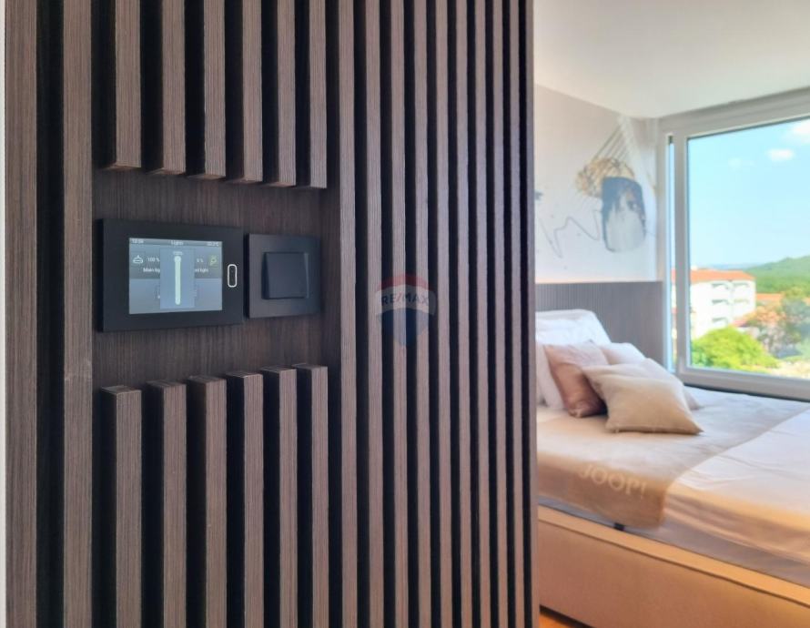U Villu je ugrađena kvalitetna PVC stolarija s troslojnim IZO staklima i to u prizemlje 3 podizno klizne stijene uz potpunu opremljenost podnim grijanjem preko dizalice topline.