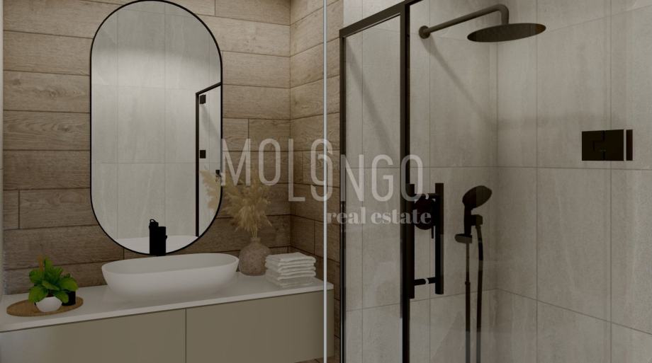 Ovaj prizemni stan pažljivo je osmišljen kako bi stvorio osjećaj prostranosti i topline. Otvoreni dnevni boravak s kuhinjom i blagovaonicom pretvara se u srce doma, gdje se mirisi domaćih jela i zvuk smijeha prirodno stapaju s pogledom na privatnu terasu i vrt. Velike staklene stijene donose obilje sunčeve svjetlosti, a večernji zalasci pretvaraju ovaj kutak u pravo utočište mira i romantike.