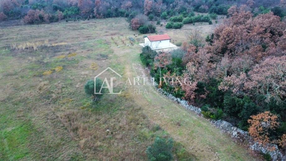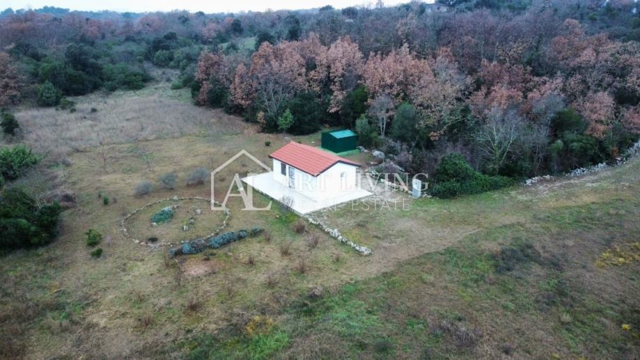 Prodaje se šarmantna malena kuća okružena velikim zemljištem, udaljena 5 km od Rovinja te 3 km od mora i uređenih plaža.