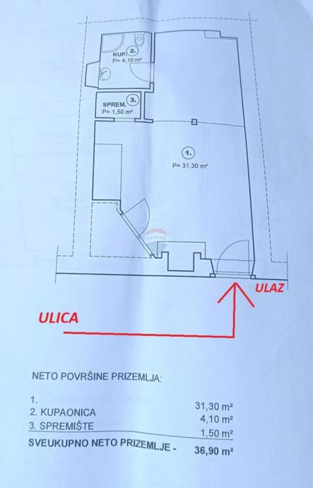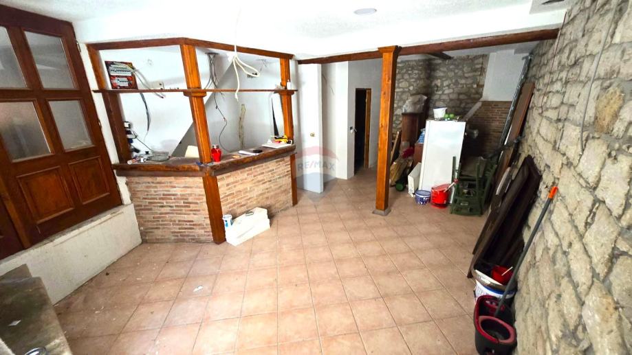 Radi se o urednom prizemlju s dva ulaza, koje se sastoji od velikog open space prostora s kaminom u funkciji,spremišta i kupaonice.