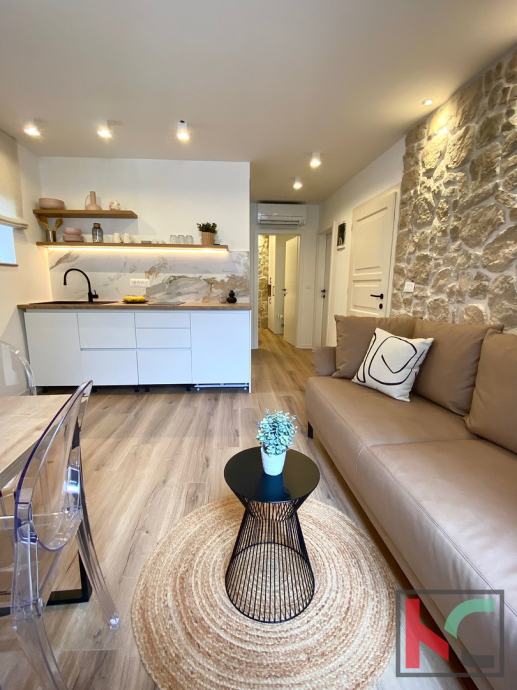 Prodaje se kompletno renovirani stan smješten u mirnoj ulici u staroj jezgri Rovinja, svega 200m od crkve Sv. Eufemije.