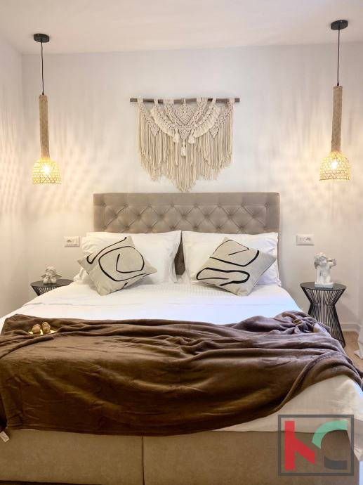 Sastoji se od open space kuhinje s blagovaonicom i dnevnim boravkom, dvije spavaće sobe i kupaonice.