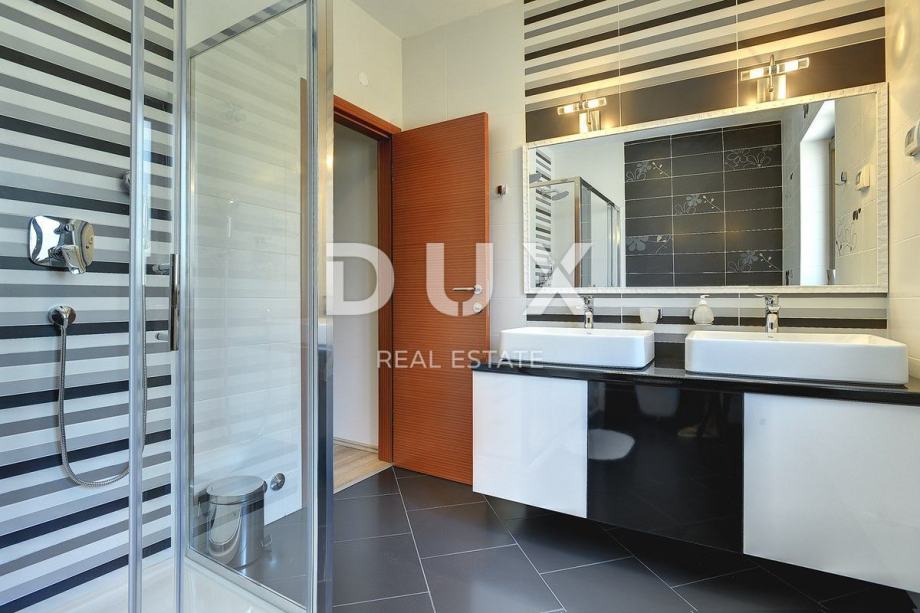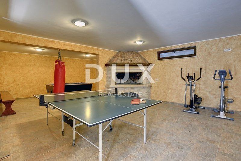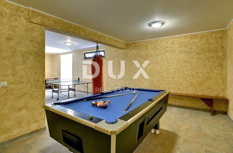 Prostor u vili je organiziran na način kako bi se osigurao ugodan boravak dostojan današnjim standardima i modernom stilu života, tako se njenih 385m2 dijeli na sveukupno dvije etaže, prizemlje i kat, te od suterena odnosno podruma, veličine 100m2, u kojem se nalazi kamin, biljar, fitness i kupaonica.