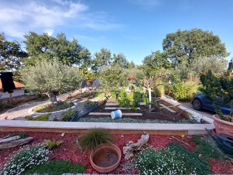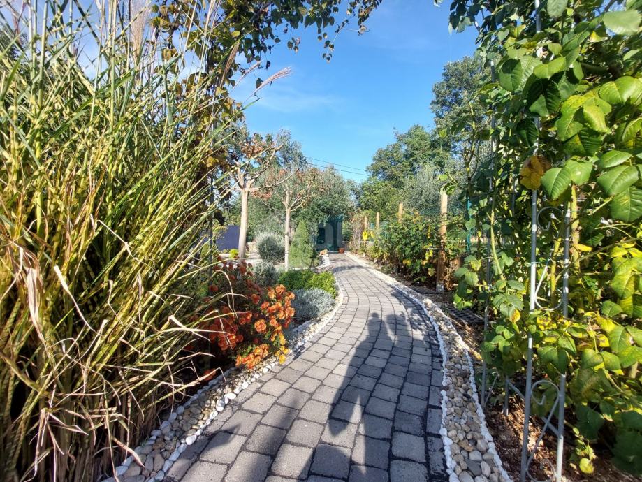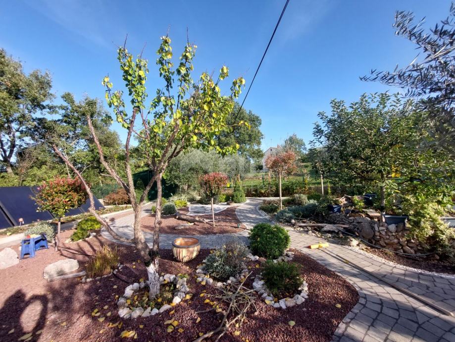 Prekrasno dvorište površine 934 m2 uređeno je i održavano. Zasađene su razne ukrasne biljke, a u stražnjem dvorištu ima mjesta i za izgradnju bazena. U stražnjem dvorištu se također nalazi pomoćni objekt koji služi kao spremište.