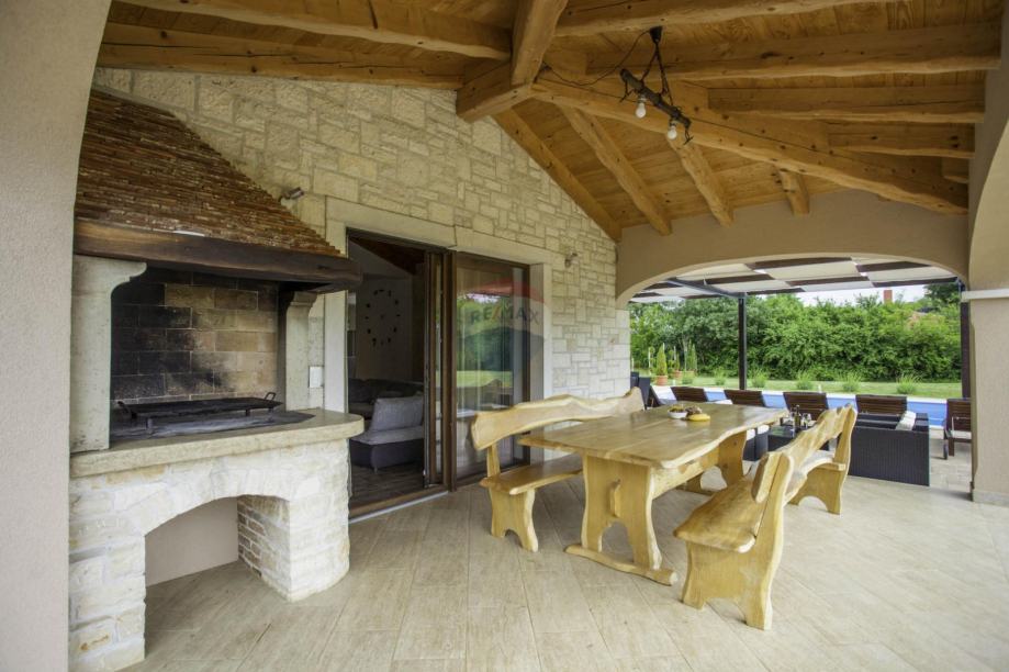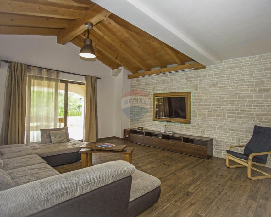 Villa ima ugrađeno centralno grijanje na drva i 5 klima uređaja. Villa je potpuno opremljena i namještena. Imanje je okruženo privatnim vrtom od cca 2500 m2, s automatskim navodnjavanjem a tu se smjestio i bazen površine 54 m2. Gosti mogu uživati u maksimalnoj privatnosti i ugođaju boravka.