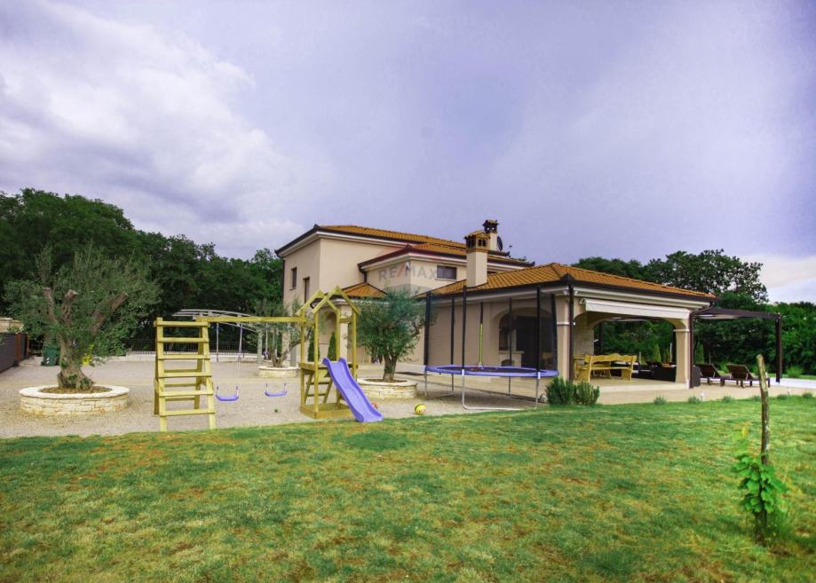 U okolici Rovinja prodajemo vilu s 4 prostrane spavaće sobe svaka sa svojom kupaonicom. Ova prekrasna villa se proteže na 3 etaže, (podrum, prizemlje, kat) izgrađena je 2015.g.