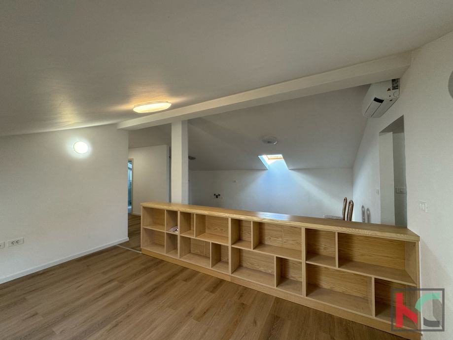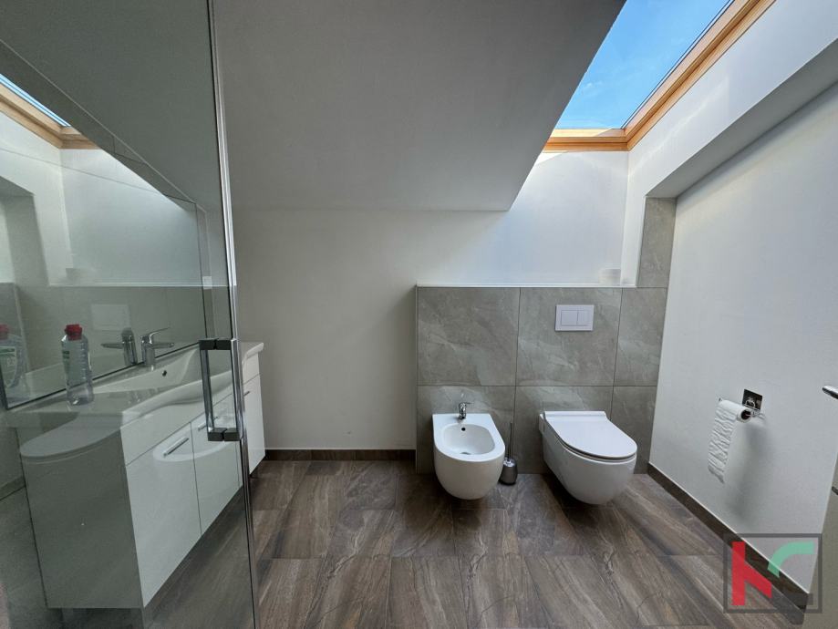 Prodajemo, u jednom od najpoželjnijih gradova u Istri, prostrani trosobni stan u potkrovlju zgrade novije gradnje.