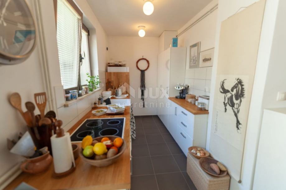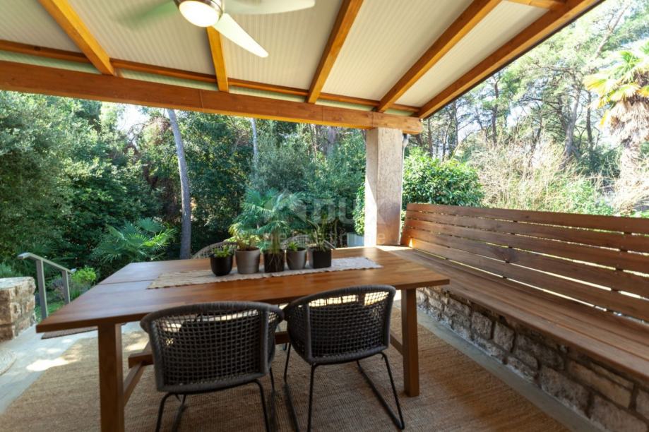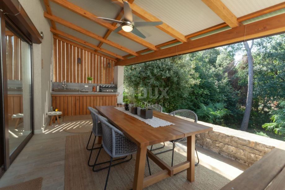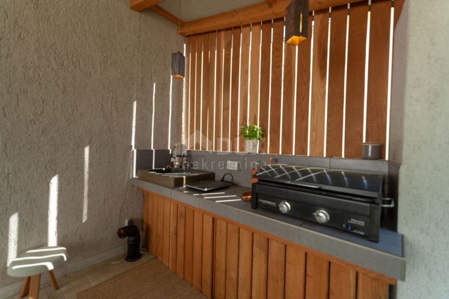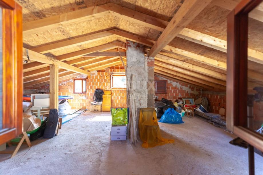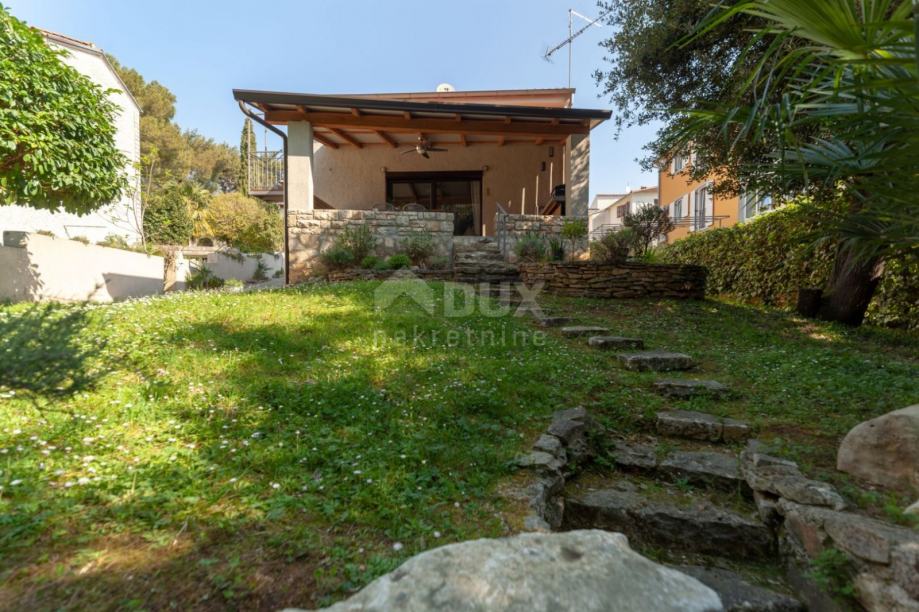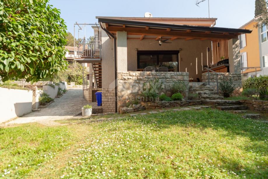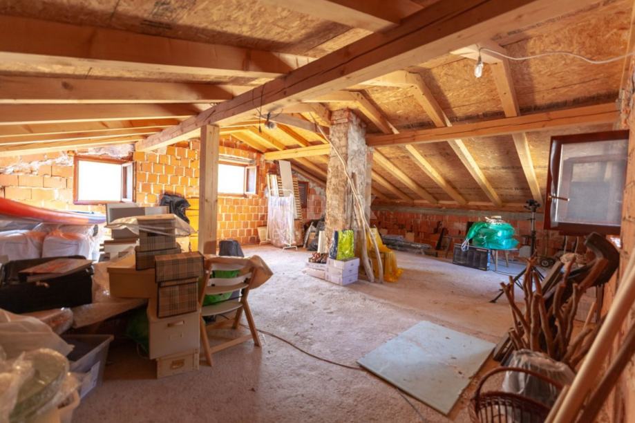 U okolici Rovinja u atraktivnome naselju, smjestila se ova obiteljska kuća. Kuća je površine 170 m2 te je izgrađena u 80-im godinama 20. stoljeća, a temeljito renovirana 2014. godine. Kuća se proteže kroz podrum, prizemlje i kat. U podrumu se nalaze spremišta (2x). U prizemlju se nalazi dvosobni apartman. Najgornja etaža se sastoji od tavanskog prostora površine 73,30 m2 te balkona površine 7,71 m2. Obzirom da je veći dio tavana odgovarajuće visine te da je već izvedeno vanjsko stubište, moguće je bez većih zahvata tavan prenamijeniti u stambeni prostor. U kući je provedeno centralno grijanje na struju, električno podno grijanje u kupaonici i u kuhinji i električni bojler za grijanje potrošne tople vode.