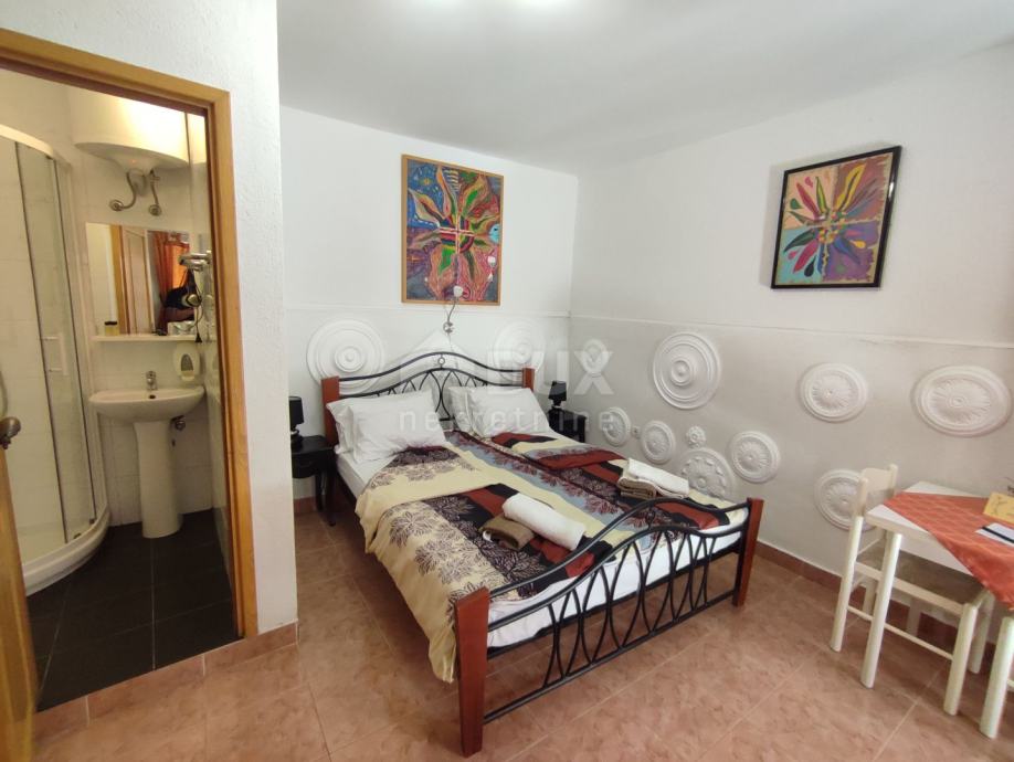 *Prva stambena jedinica se nalazi na prizemlju s vlastitim i zasebnim ulazom direktno s ulice i pješačke zone. Tu su se smjestili u jednome prostoru kuhinja, blagovaona i dnevni boravak/spavaća soba. Ovoj jedinici pripada i dodatni prostor koji se trenutno koristi kao spremište, a gdje se nalaze sve potrebne instalacije za odvojenu kuhinju i blagovaonu čime bi se dobilo na kvadraturi i prostoru.