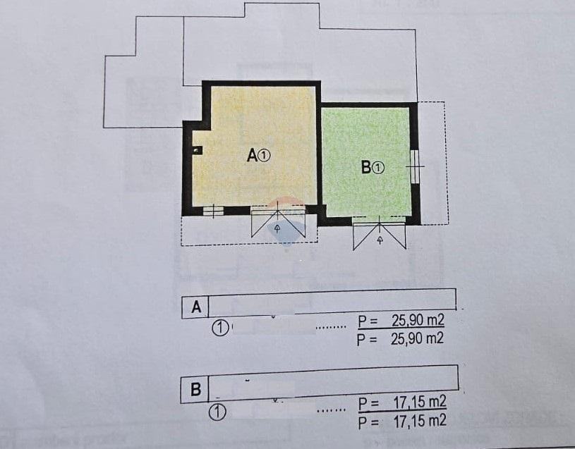Lijeva prostorija predstavlja studio s kupaonicom,a desna prostorija veliki dnevni boravak s još jednom kupaonicom.