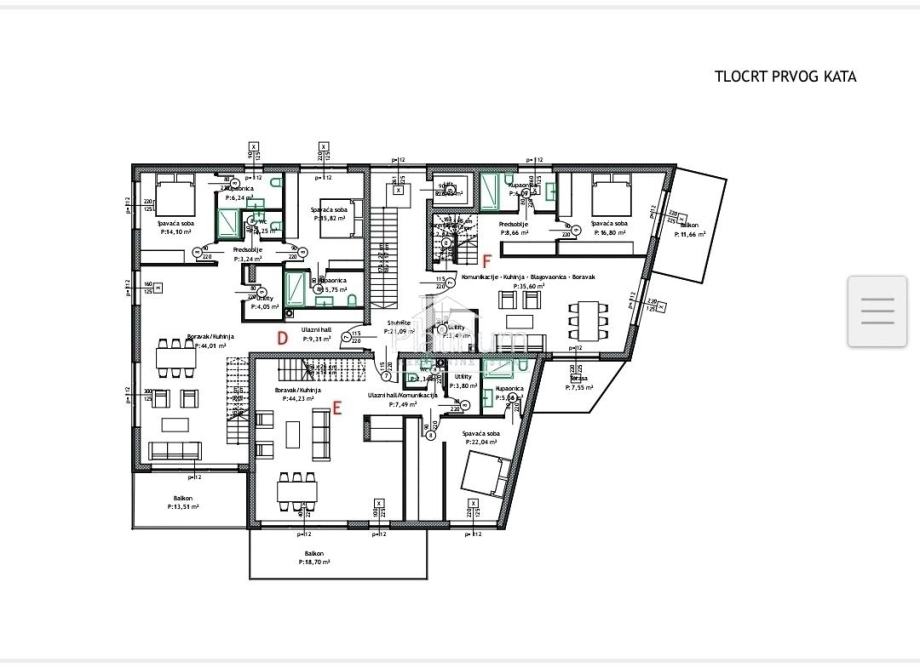 predsoblje, spavaća soba, kupaonica, ostava, dva balkona