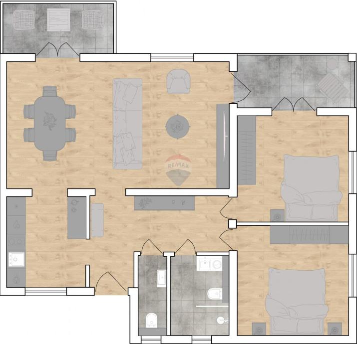 Stan se prodaje kompletno na novo uređen bez namještaja.