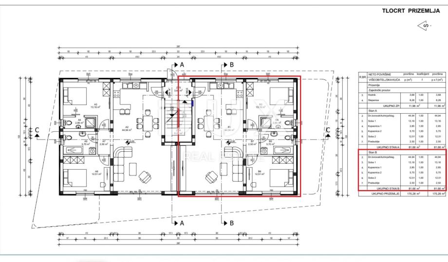 U toj zgradi na prodaju je stan B koji se nalazi u prizemlju.