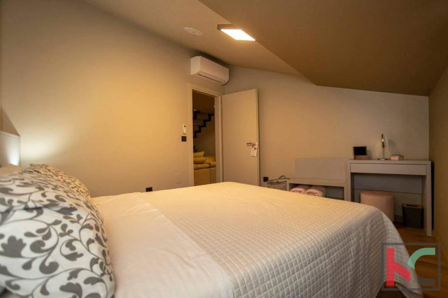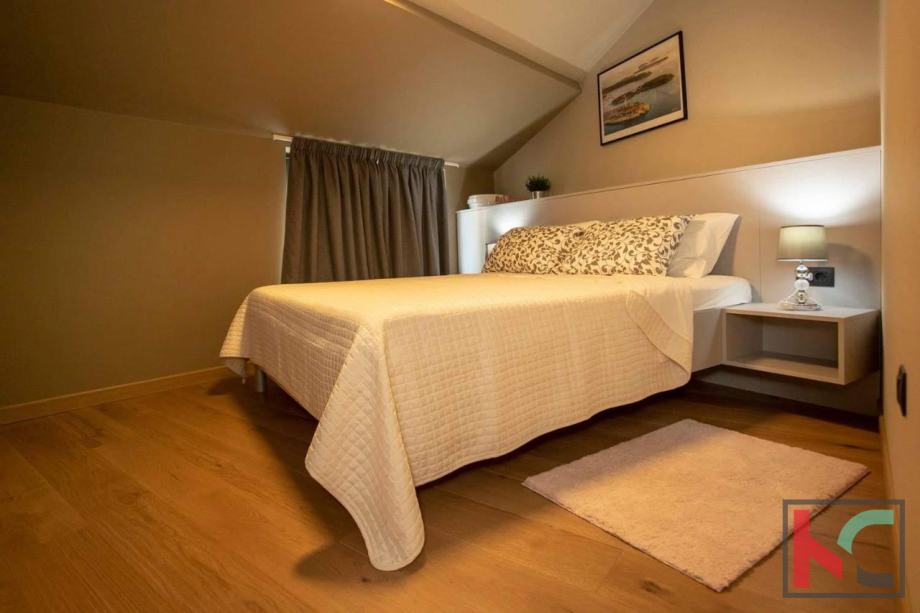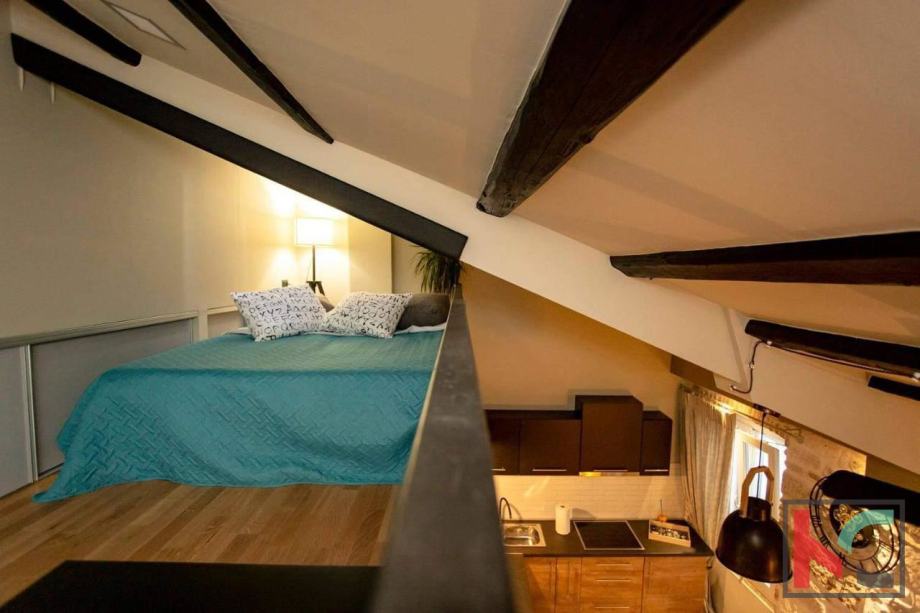 Sastoji se od dvije spavaće, kupaonice, prostranog dnevnog boravka sa kuhinjom, odličan dio stana je galerija u koju dolazimo stepenicama iz dnevnog prostora u kojoj se nalazi jedna od dvije spavaće sobe.