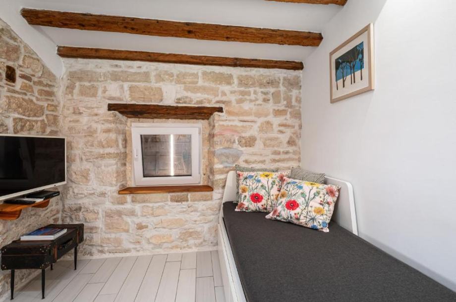 Na trećem katu uredne zgrade u starogradskoj jezgri prodaje se stan koji je podijeljen u dva apartmana – jedan jednosobni apartman površine 30 m² i jedan studio od 16 m². Oba apartmana su kvalitetno i s puno stila obnovljena, s posebnom pažnjom na detalje, te se trenutno uspješno iznajmljuju. Prodaju se potpuno namješteni i spremni za korištenje, bilo za osobne potrebe ili kao nastavak uhodanog turističkog najma.