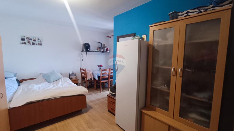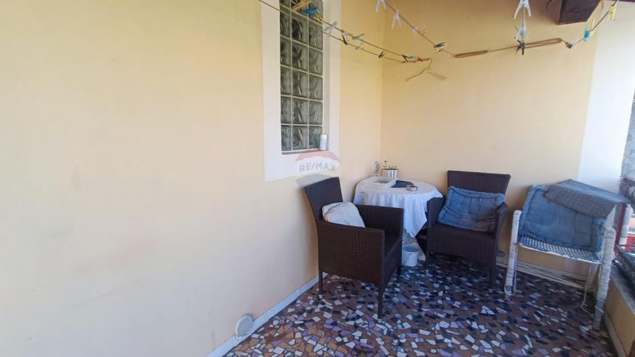 Prvi kat: Renovirani stan od 35 m² s prostranom terasom, savršenom za jutarnju kavu, te dva studio apartmana , svaki od 20 m² i koji koriste zajedničku kupaonicu.