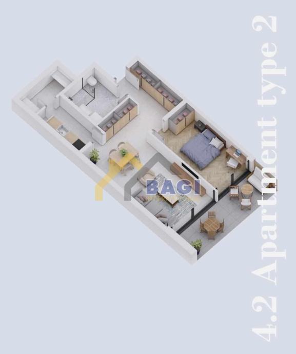 - Podne obloge: Talijanske pločice u cijelom stanu, osim u spavaćoj sobi, gdje je predviđena drvena podna obloga.