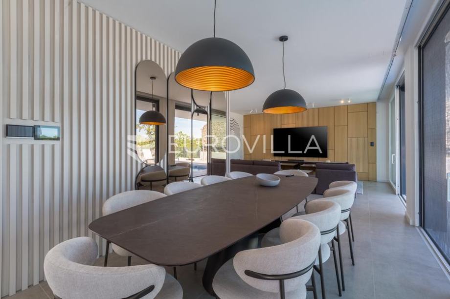 Istria, Rovinjseko selo, luxury modern villa on two floors with a swimming pool in a peaceful location.The villa spans two floors: the ground floor (90.72 m2) and the first floor (131.61 m2), and is being sold fully equipped with luxurious furnishings, furniture and a complete inventory.The ground...