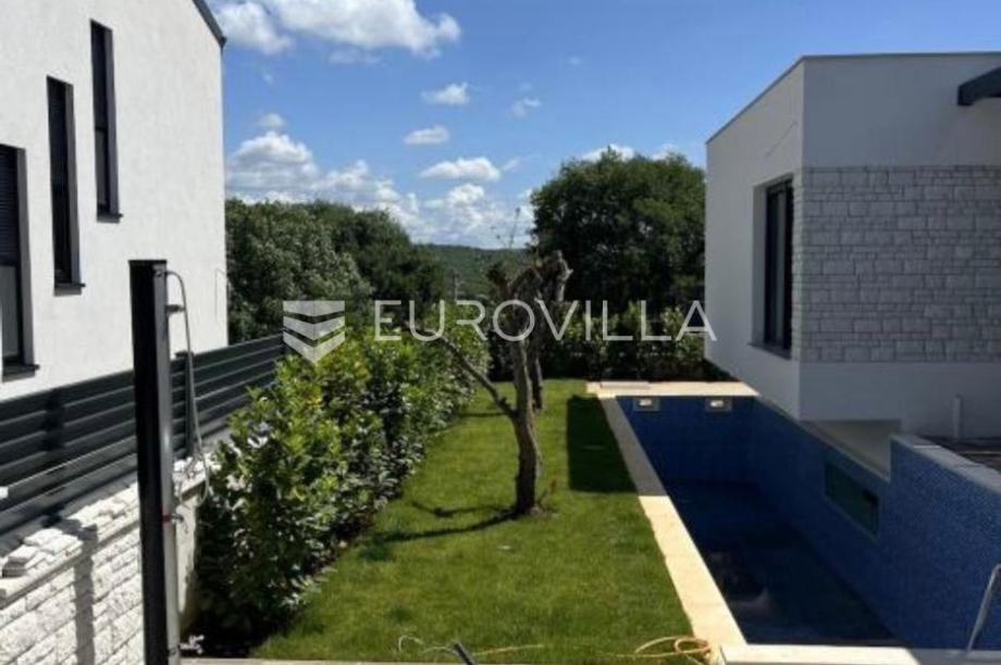 Istria, Rovinjsko Selo – newly built modern villa with four bedrooms, sauna, jacuzzi, and outdoor pool This luxurious villa is situated on a 550 m² plot, surrounded by family homes and nature. Spanning 218 m², the villa features an entrance hall with a storage room and a guest toilet. The...