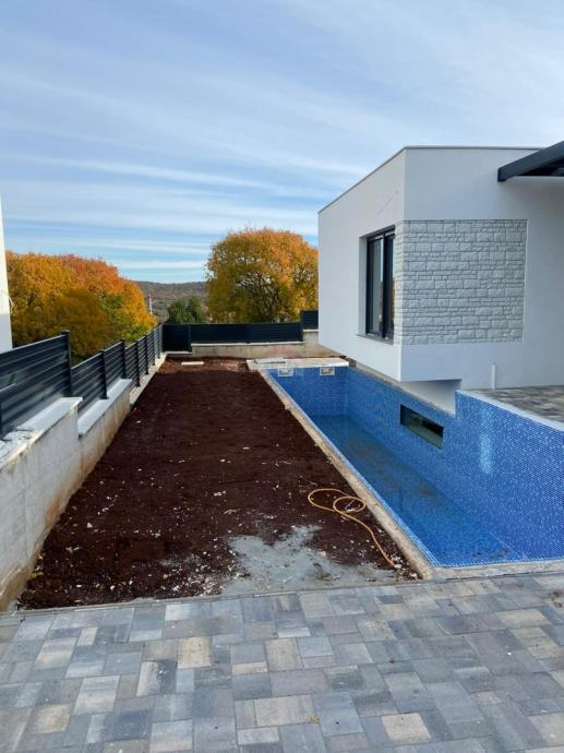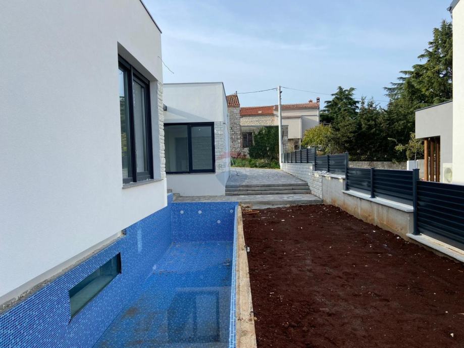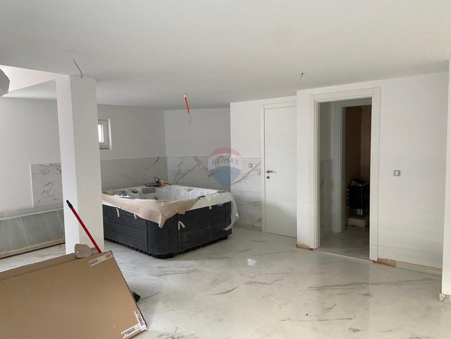 Kuća je koncipirana na način da se sve za življenje važne prostorije nalaze na istom katu. Sastoji se od otvorenog dnevnog dijela u kojem se smjestila kuhinja, dnevni boravak i blagovaona. Zatim imamo 4 spavaće sobe sa 4 kupatila. Iz dnevnog dijela izlazi se na terasu i bazen. Bazen će dijelom biti ostakljen i vidljiv u podrumu u kojem će biti smještena teretana, sauna i razni sadržaji za opuštanje. Kuća ima predviđeno 3 parkirna mjesta. Za grijanje je postavljena dizalice topline i klime.