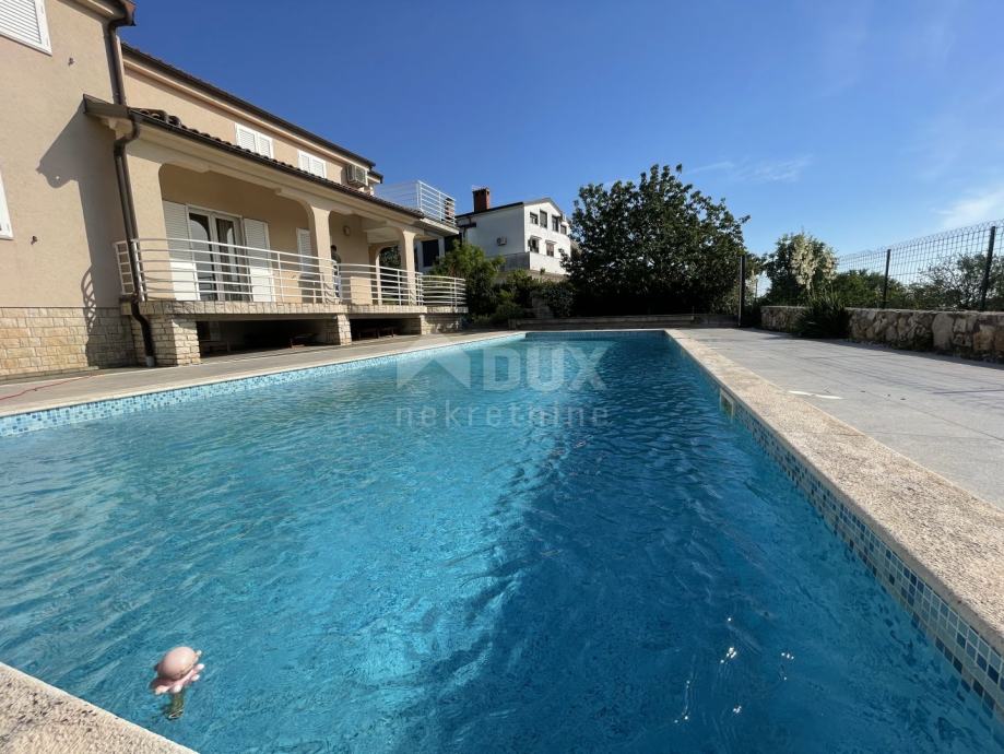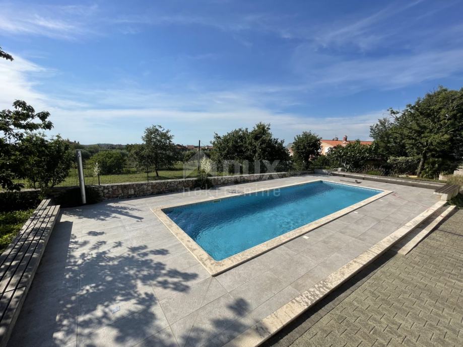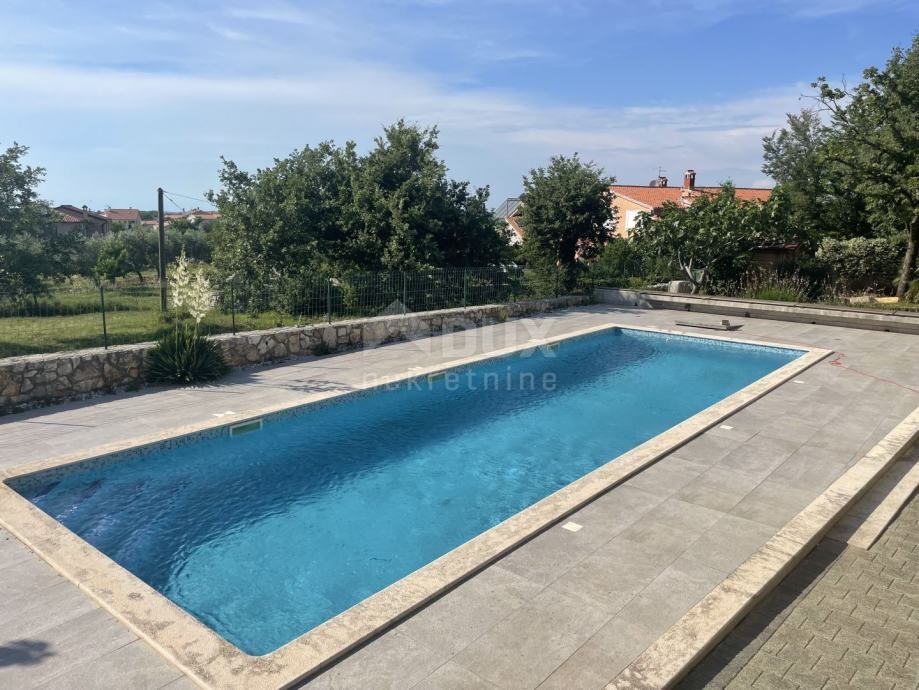 Okućnica je uređena i redovno održavana. Iza kuće se smjestio bazen veličine 12x4 metara (1.4 metara dubine) s rimskim stepenicama i mozaikom izgrađen 2018. godine. Bazen je osvjetljen i ograđen drvenim klupicama, a pored samoga bazena nalazi se i vanjski tuš.