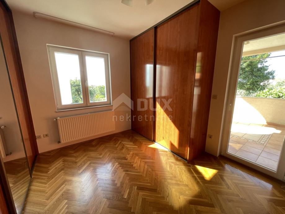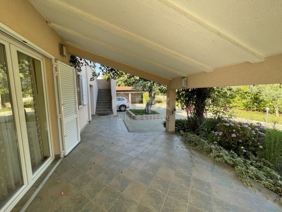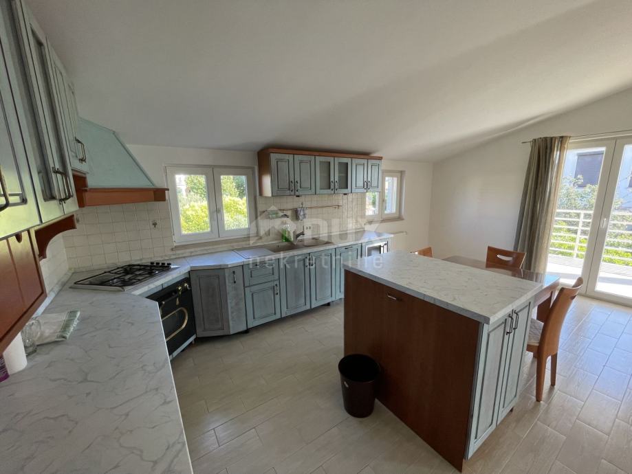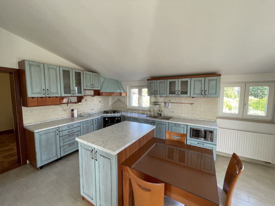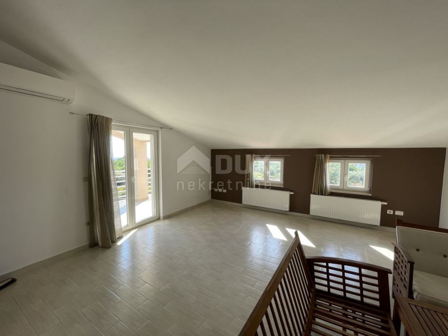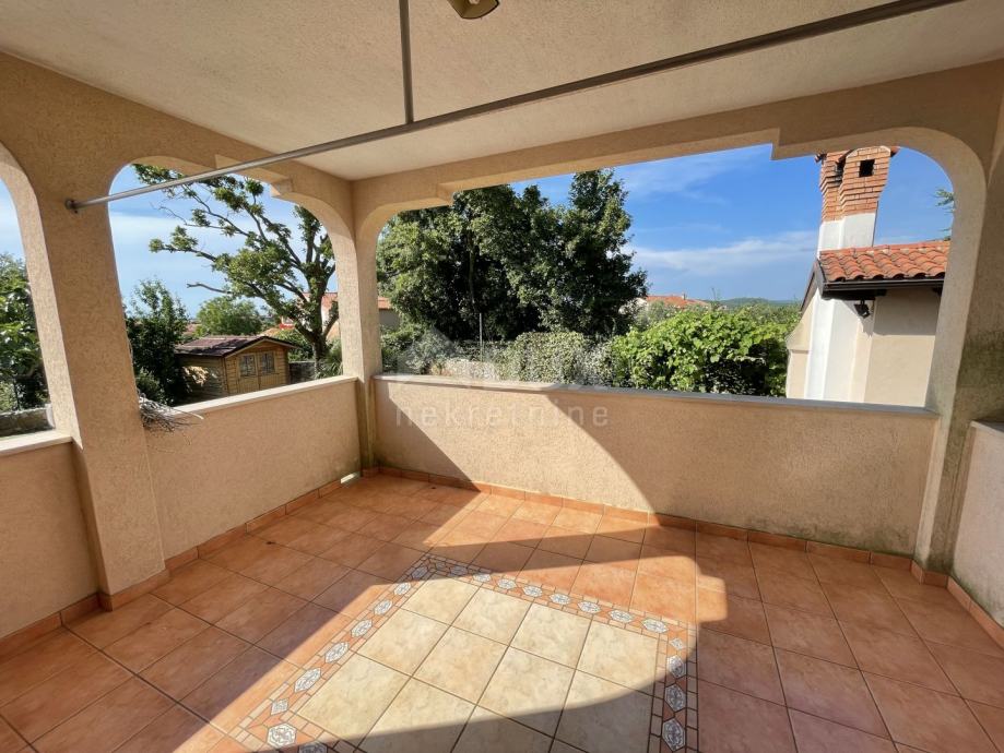 Izvan kuće se nalazi stepenište koje vodi na kat di se smjestio drugi stan. Gornji stan se sastoji od kuhinje i blagovaone, dnevnoga boravka, spremišta, WC-a, kupaone i čak četiri spavaće sobe od čega jedna soba ima izlaz na terasu. S gornje terase se pruža nezaboravan pogled na more i Istarske brežuljke.