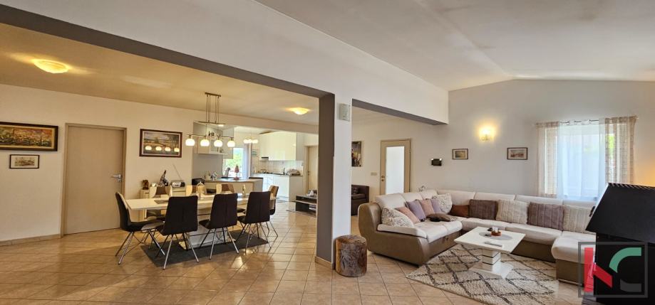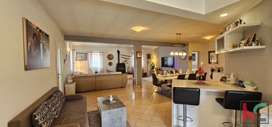 Na ulazu kuće nalazi se predsoblje i jedna kupaonica. Nakon toga ulazimo u veliki dnevni boravak sa kuhinjom i blagovaonom, mjesto gdje se može okupiti veća obitelj bez narušavanja komfora zahvaljujući prostranosti.