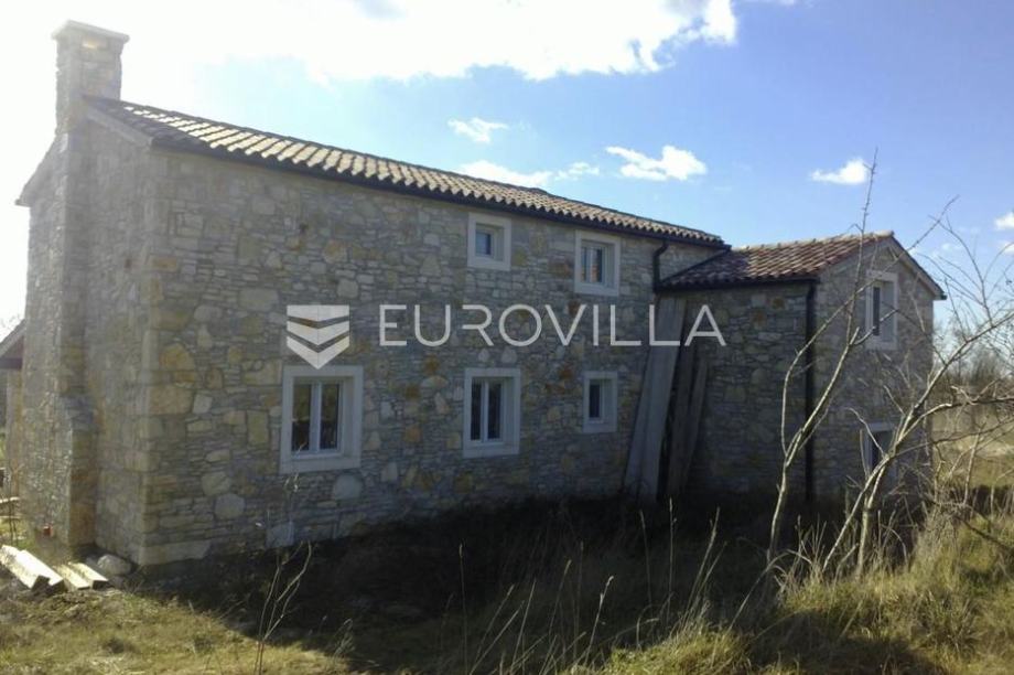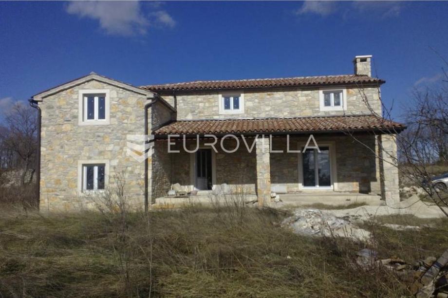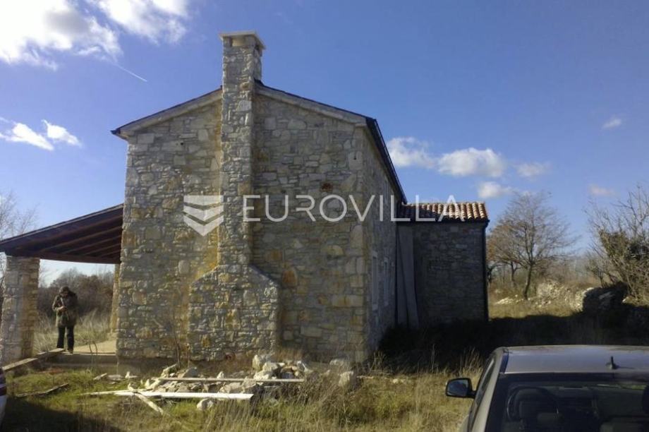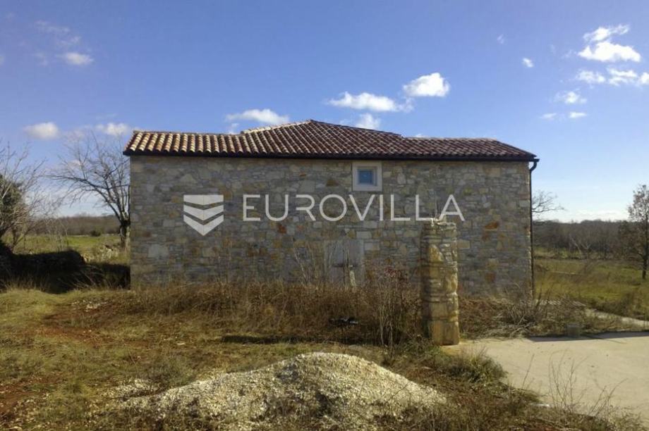Istria, near Svetvinčenat, a stone two-story house with a pool on a spacious plot of 5,237m².The house is "T"-shaped in plan, with a ground floor and an upper floor, boasting a gross area of 250m². The ground floor features two levels: one with a porch, living room, bathroom, and staircase, and...