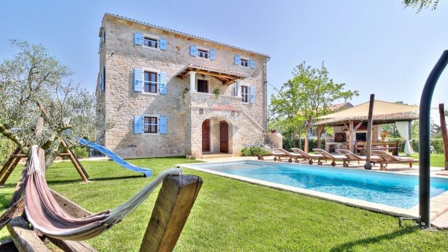 Ova vila je ukusno uređena u autentičnom istarskom stilu s modernim dodatcima, pružajući vam toplinu doma i udobnost. Na prostranoj okućnici nalazi se bazen i sunčalište, idealni za opuštanje i uživanje. Tu je i vanjska sjenica s vanjskom kuhinjom, savršena za druženje s obitelji i prijateljima.