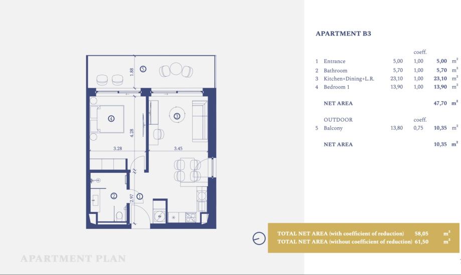 Istra, Savudrija, moderan apartman s jednom spavaćom sobom u prizemlju zatvorene površine 48m2 u sklopu Petram Resorta. Apartman B3 se sastoji od ulaznog hodnika, kupaone, open space dnevnog boravka i kuhinje, spavaće sobe te balkona. Apartmanu pripada i parkirno mjesto. Navedena cijena...Za ovu nekretninu kontaktirajte agenticu na broj telefona +385 91 612 0866.Više na Eurovilla.hr, ID: 447809Direktan link: https://eurovilla.hr/nekretnina/istra-savudrija-petram-resort-apartman-s-jednom-spavacom-sobom-u-prizemlju-nkp-61-50-m2/447809/-----Istria, Savudrija, modern one-bedroom apartment on the ground floor with a closed area of 48m2, located within the Petram Resort. Apartment B3 consists of an entrance hallway, bathroom, open-plan living room and kitchen, bedroom, and balcony. The apartment also comes with a parking space. The... For this property contact our agent on telephone number +385 91 612 0866.More on Eurovilla.hr, ID: 447809Direct link: https://eurovilla.hr/en/property/istria-savudrija-petram-resort-one-bedroom-apartment-on-the-ground-floor-nkp-61-50-m2/447809/...