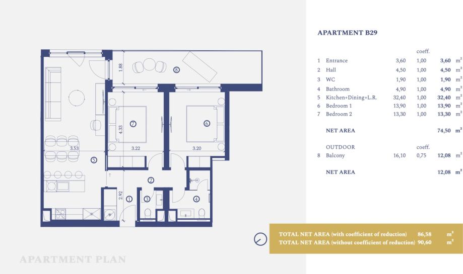 Istra, Savudrija, moderan apartman s dvije spavaće sobe na prvom katu zatvorene površine 74,50m2 u sklopu Petram Resorta. Apartman B29 se sastoji od ulaznog dijela, hodnika, vešeraja, toaleta i kupaone, open space dnevnog boravka, kuhinje i blagovaone, dvije prostrane spavaće sobe te balkona....Za ovu nekretninu kontaktirajte agenticu na broj telefona +385 91 612 0866.Više na Eurovilla.hr, ID: 212487Direktan link: https://eurovilla.hr/nekretnina/istra-savudrija-petram-resort-apartman-na-prvom-katu-s-dvije-spavace-sobe-nkp-90-60m2/212487/-----Istria, Savudrija, a modern two-bedroom apartment on the first floor with a net usable area of 74.50 m², located within the Petram Resort. Apartment B29 consists of an entrance area, hallway, laundry room, toilet, bathroom, open-space living room, kitchen and dining area, two spacious bedrooms,... For this property contact our agent on telephone number +385 91 612 0866.More on Eurovilla.hr, ID: 212487Direct link: https://eurovilla.hr/en/property/istra-savudrija-petram-resort-2-bedroom-apartment-on-the-1st-floor-nkp-90-60m2/212487/...