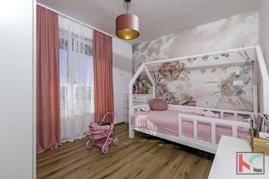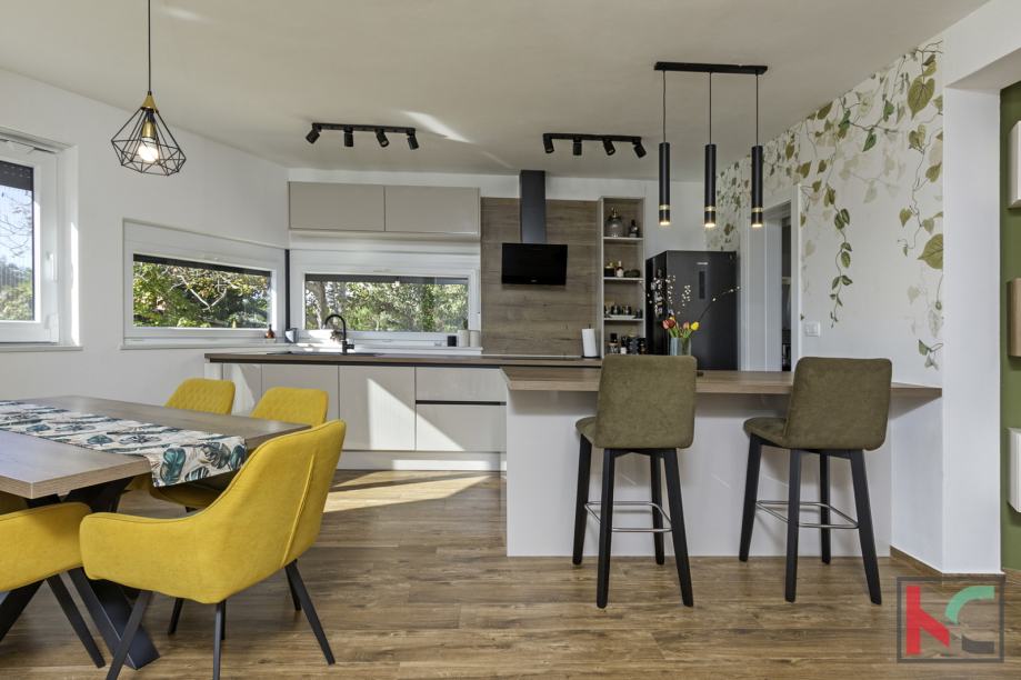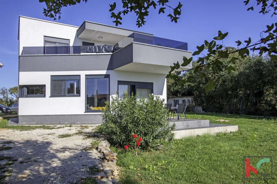 Na prodaju je atraktivna, samostojeća moderna obiteljska kuća, izgrađena 2022. godine, smještena na prostranoj parceli od 995 m2 u mirnom mjestu svega 1 km od mora i 19 km od Pule. Ova kvalitetno građena nekretnina pruža idealan spoj suvremenog dizajna, komfora i privatnosti, te je savršena za cjelogodišnje stanovanje, ljetovanje ili turistički najam.