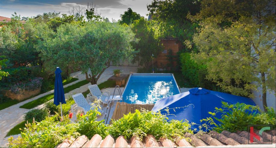 Nekretnina je smještena na 364m2 uredno održavane okućnice sa garažom (36m2), te bazenom.