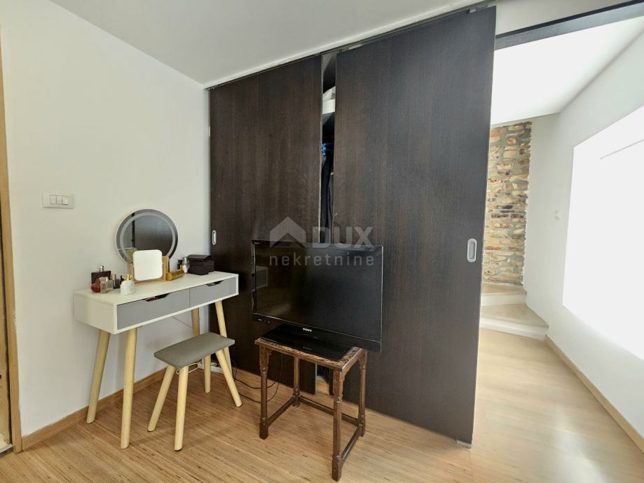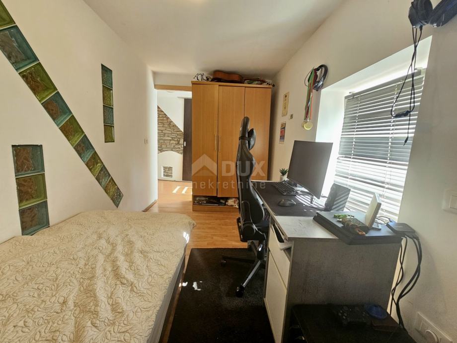 Unutarnjim kamenim stubištem pristupamo prema ostalim etažama kuće. Na prvome katu tako se smjestila jedna spavaća soba s vlastitom kupaonicom i dodatni gostinjski toalet. Dok se na drugome katu kuće nalaze dvije spavaće sobe, od kojih jedna predstavlja dječju spavaću sobu, a druga se trenutno koristi kao radna soba. Budući vlasnici imaju mogućnost na ovoj etaži uz manju prenamjenu postaviti dodatnu kupaonicu.