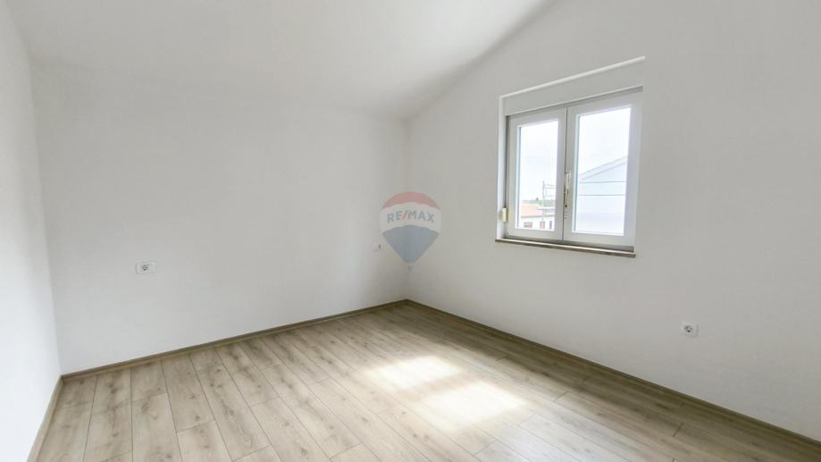 Stan je površine 90 m2, te se nalazi na prvom katu, na koji se dolazi odvojenim vanjskim stubištem.